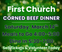 You MUST order your dinner(s) in advance by Thursday, March 12th. Dinners are $25 each, and you can request tickets for purchase by calling the church office at 203-743-1877. Make your check payable to First Congregational Church of Bethel (FCCB).